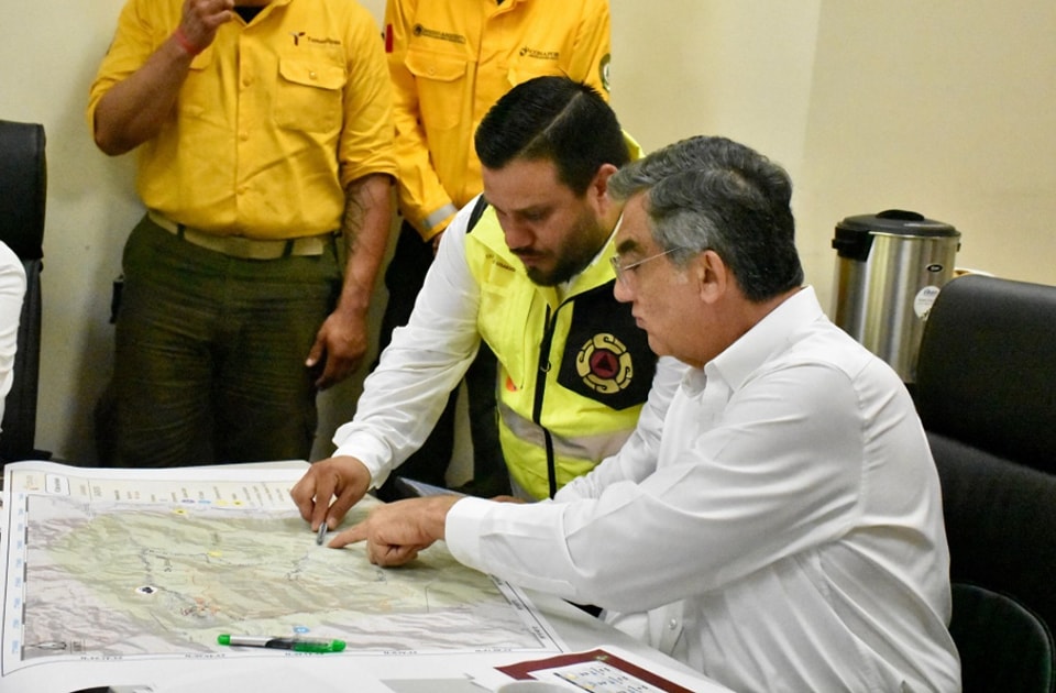 En la reunión, el gobernador hizo un reconocimiento y destacó la colaboración de los pobladores de las comunidades ejidales afectadas que se han sumado de manera voluntaria a las tareas de combate al incendio.