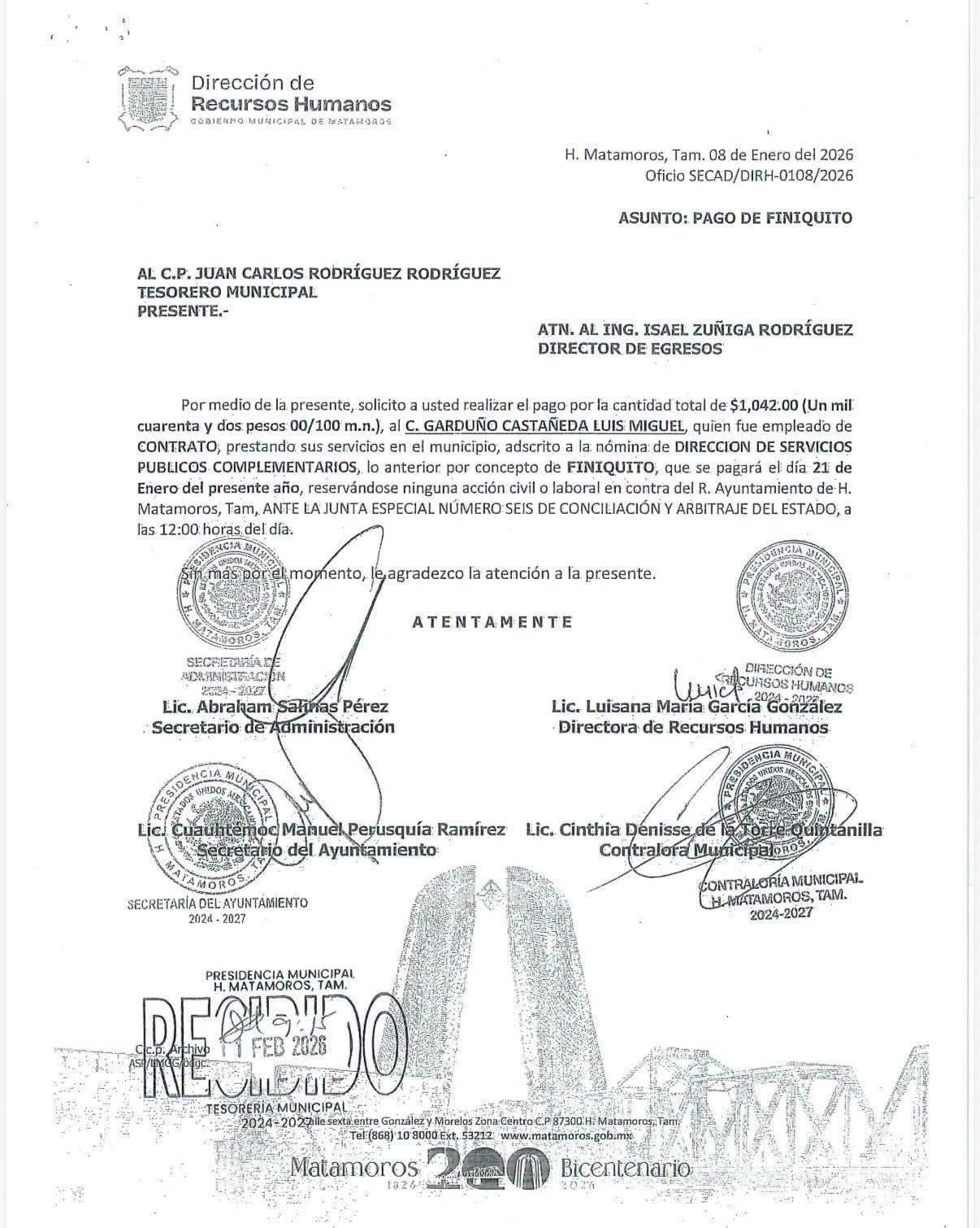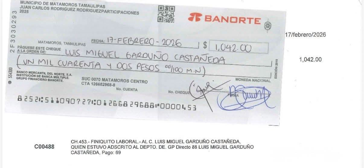 Autoridades municipales desmintieron versiones difundidas en redes y algunos medios sobre la supuesta vinculación laboral de Luis Miguel Garduño Castañeda con el Ayuntamiento de Matamoros.
