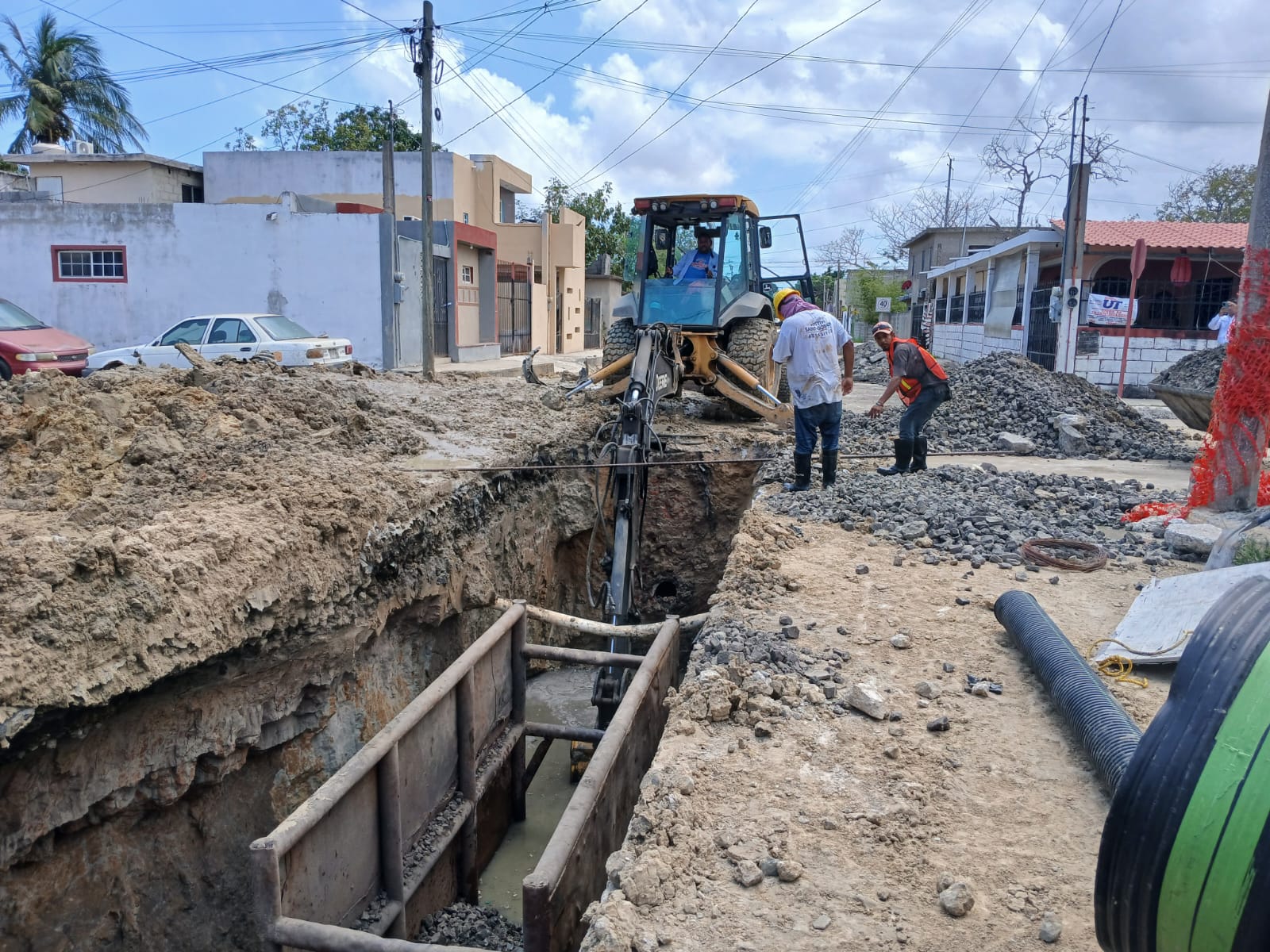 Como parte de las acciones para fortalecer la infraestructura hidrosanitaria en la zona sur de Tamaulipas, COMAPA SUR lleva a cabo la rehabilitación de un colector sanitario de 24 pulgadas, con una extensión de 400 metros lineales, ubicado en la calle Japón, entre Luxemburgo e Irak, en la colonia Solidaridad, Voluntad y Trabajo.