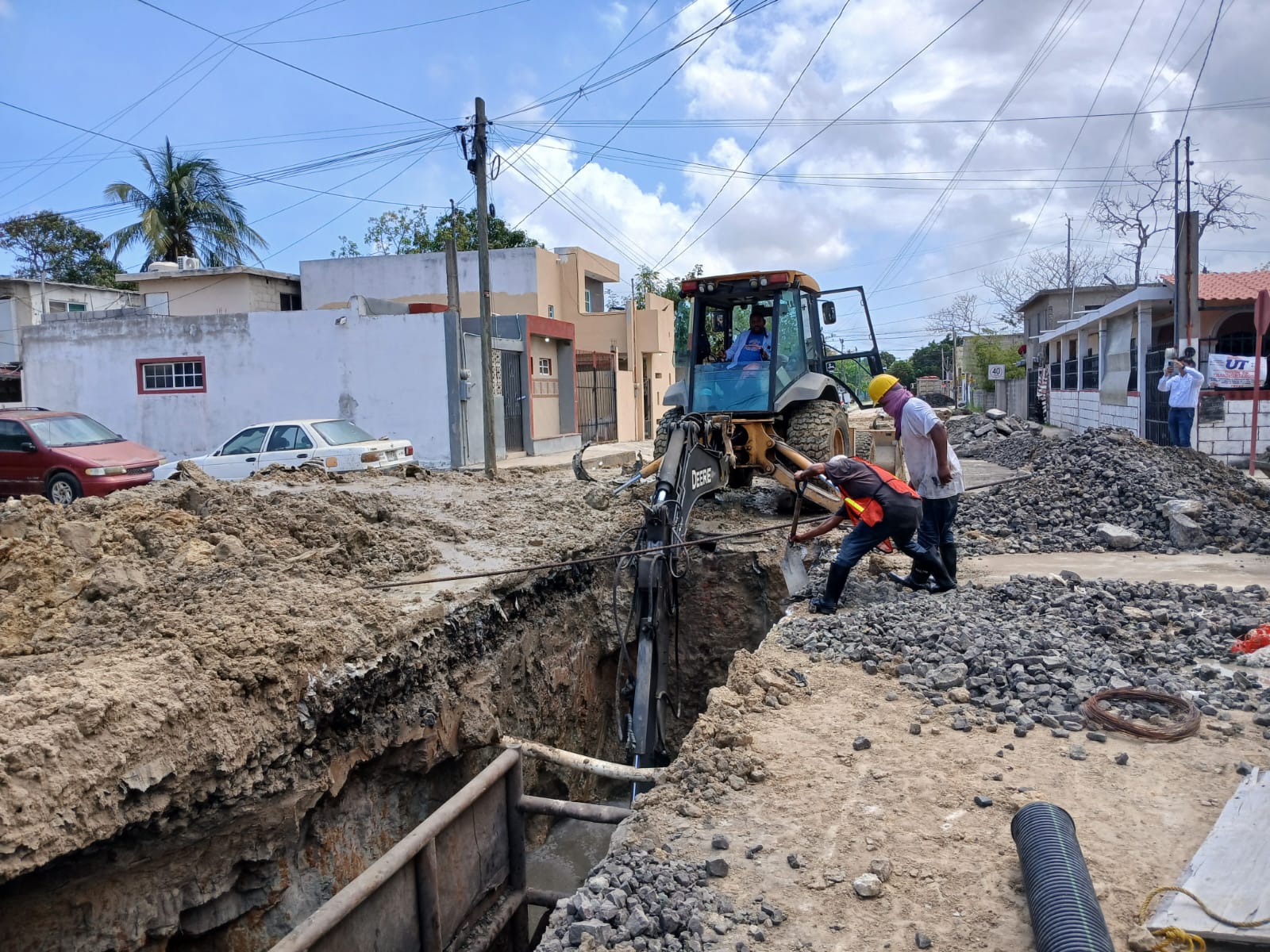 Como parte de las acciones para fortalecer la infraestructura hidrosanitaria en la zona sur de Tamaulipas, COMAPA SUR lleva a cabo la rehabilitación de un colector sanitario de 24 pulgadas, con una extensión de 400 metros lineales, ubicado en la calle Japón, entre Luxemburgo e Irak, en la colonia Solidaridad, Voluntad y Trabajo.