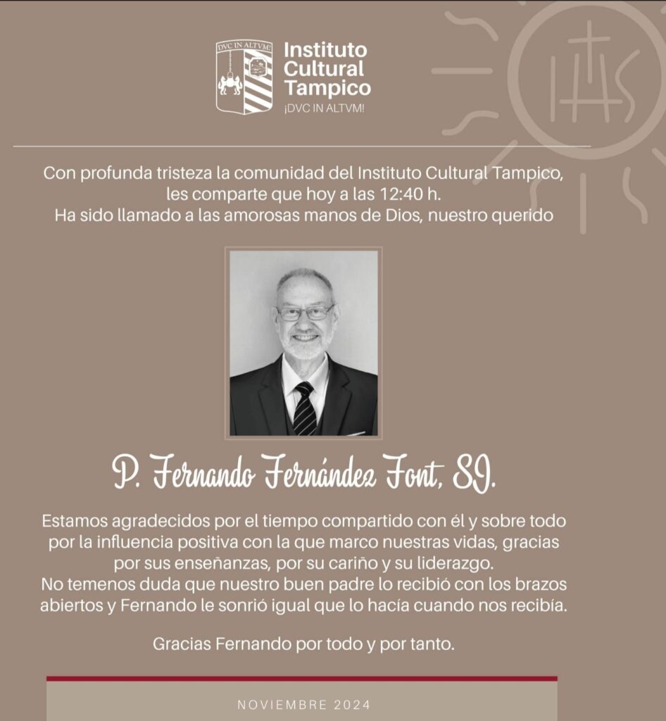Hace unos momentos la propia institución dio a conocer en su cuenta de instagram que el Padre rector Fernando Fernández Font fallecio a las 12:40 horas.