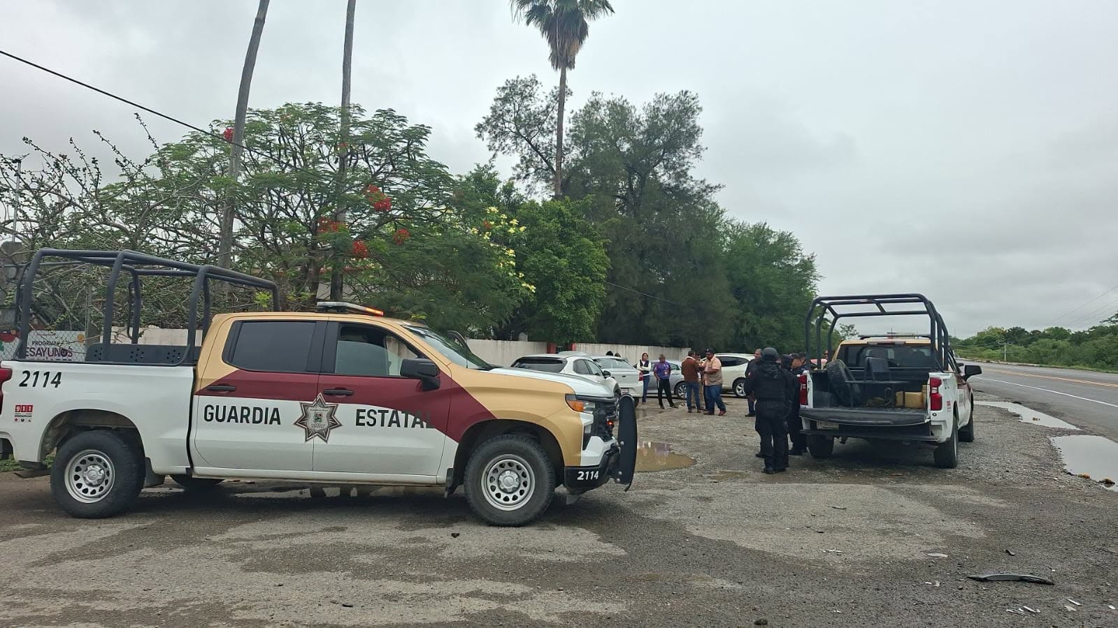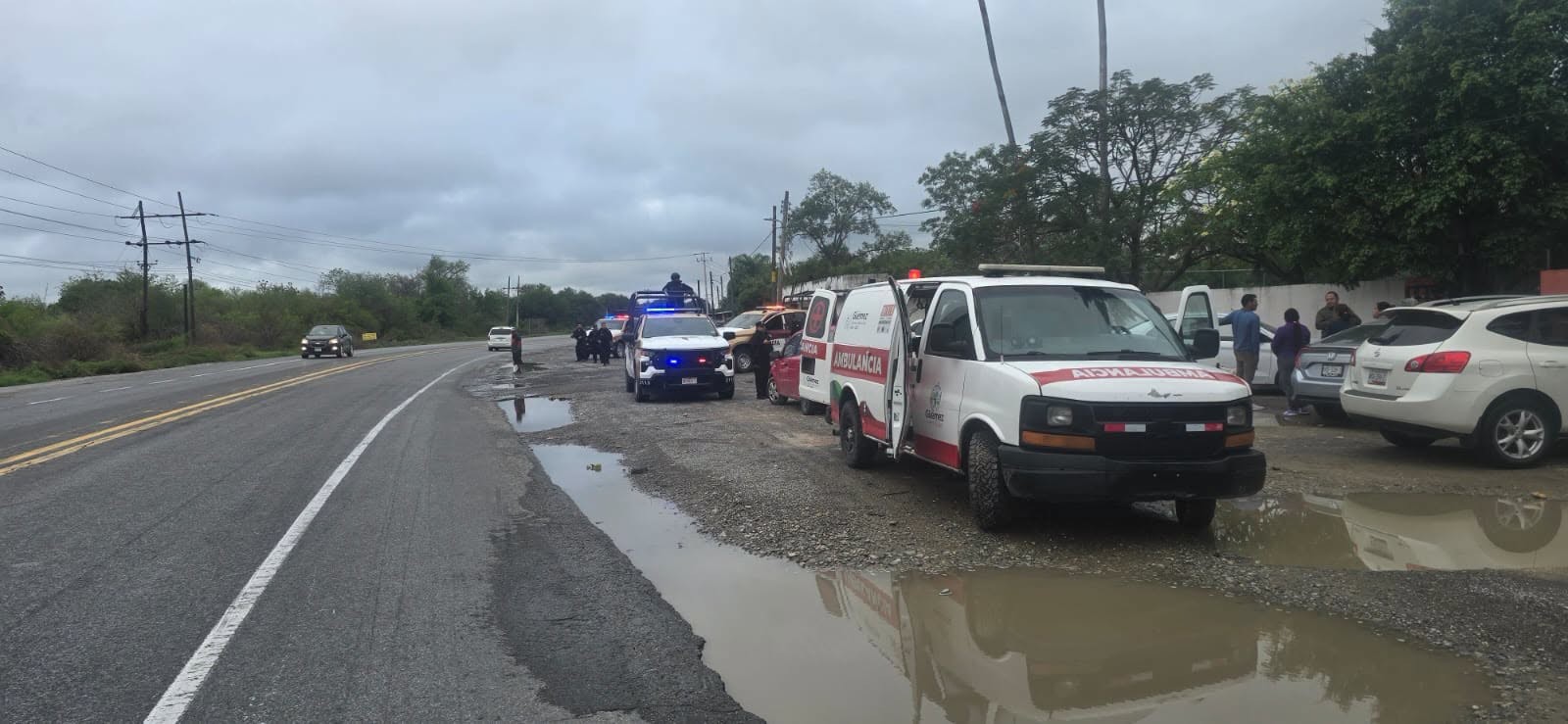Güémez, Tamaulipas.- En atención al reporte de un accidente vehicular, personal de la Guardia Estatal se encuentra brindando seguridad perimetral sobre el kilómetro 25 de la Carretera Federal 85 Victoria-Monterrey.