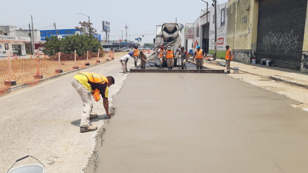 Asimismo, estamos trabajando en la pavimentación de calles que fueron abiertas por la ejecución de obras en diversas colonias como Fraccionamiento Villas del Mar, Morelos, Laguna de la Puerta, Guadalupe Victoria y Unidad Nacional.