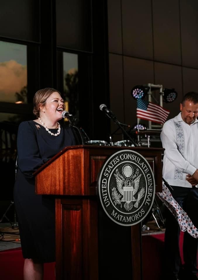 Matamoros, Tamaulipas.– La cónsul general de Estados Unidos en Matamoros, Brianna Powers destacó la colaboración con el Instituto Tamaulipeco para los Migrantes para expedir pasaportes americanos a niños, niñas y adolescentes nacidos en Estados Unidos de padres tamaulipecos que residen en Tamaulipas, a través de las ferias del pasaporte americano, durante el evento de celebración del 248º aniversario de la independencia de Estados Unidos.