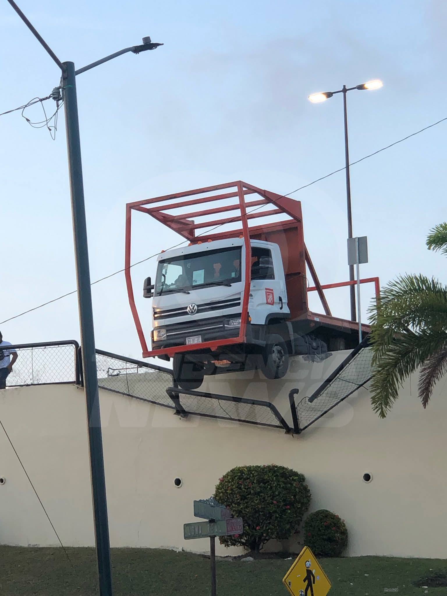 Se registra un incidente en las inmediaciones del Home Depot, donde Tampico, un camión de carga pesada sobrepasó los límites del estacionamiento y quedó en una posición de alto riesgo, prácticamente «colgando» hacia la vía pública.